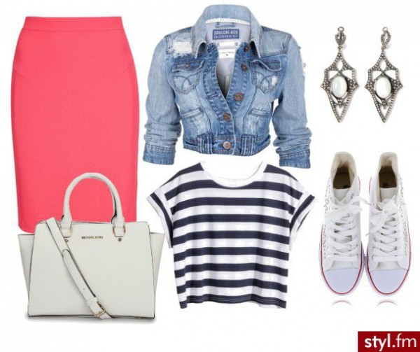 Наприклад, внизу облягає стегна контрастна смужка, а вгорі напівпрозора, майже непомітна. Дуже важливо не переборщити з смужками одному луці, а то від такого буде рябіти в очах. Так що поєднувати її краще з чимось однотонним (чорним піджаком). Чорно-білий образ рекомендуємо розбавляти аксесуарами, великими металевими сережками, до яких відмінно підходить металевого кольору клатч. У підсумку вийде строго, але жіночно.