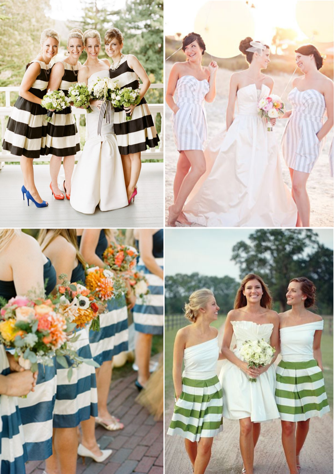 Подивіться, як оригінально виглядають вбрання подружок нареченої в стилі модних смужок! Це шик, блиск і веселощі! Особливий ентузіазм і радість! Дивиться ці фото і ви зрозумієте. про що мова!