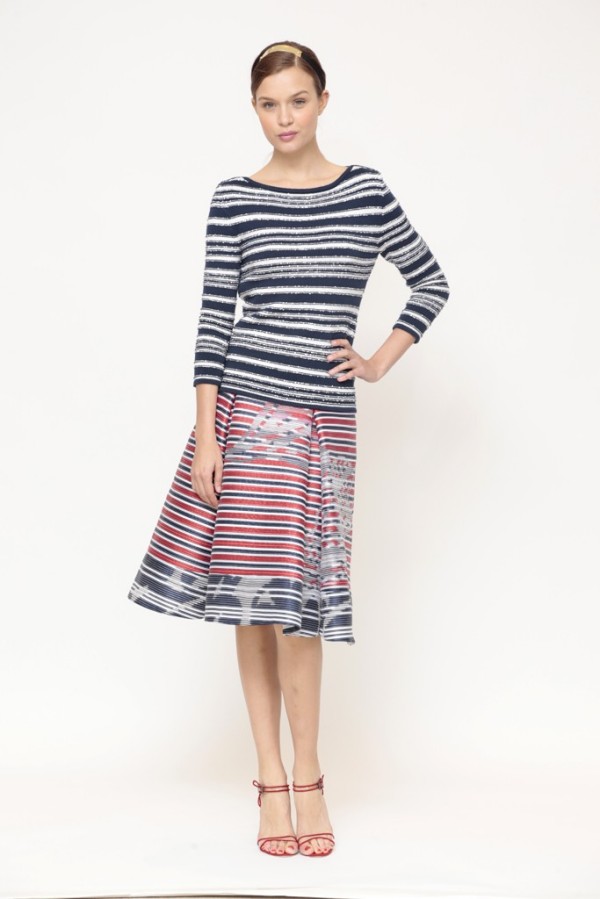 Думаю, що багато хто погодяться з тим, що смугасті спідниці-це кращий вибір для літнього сезону, так як це найкращий спосіб показати ваші красиві ноги і створити ілюзію вашого високого зростання. В цей літній сезон смуги йдуть в яскравих літніх кольорах, наприклад, червоного і синього, але основна тенденція залишається недоторканою: монохромний. Це відмінна альтернатива штанів, що дозволяють жінкам виглядати більш жіночно і витончено. Якщо ви носите костюм спідниця, то це набагато простіше і практичніше.
