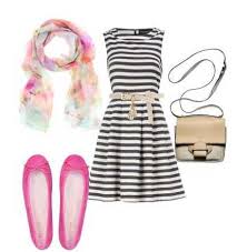 Допускається підбирати колір туфель і ременя схожими з кольором одного з смужок, ви отримаєте більш витончений образ. Можна також робити навпаки, вибирати колір цих речей так, щоб вони створювали яскравий контраст з сукнею. Наприклад, є варіант одягнути червоні туфлі і червоний ремінець в поєднанні з сукнею в класичну чорно-білу смужку.