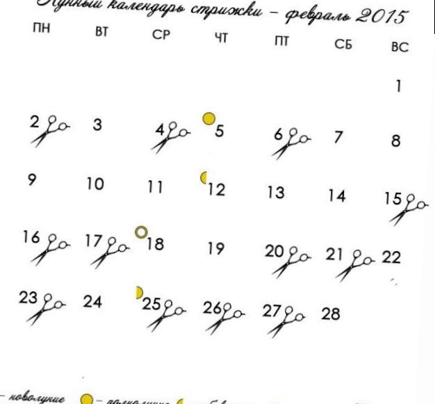 Якщо заглянути в календар, де розраховано вдалий час для походу до фахівця в обрізанні волосся в лютому 2017 року, можна побачити, що на вдалий результат