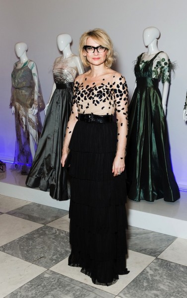 Її образ — це завжди яскравий насичений колір, великі аксесуари і в добавок до цього яскраві деталі на сукню у вигляді орнаментів і візерунків вишитих стеклярусом, бісером або стразами.