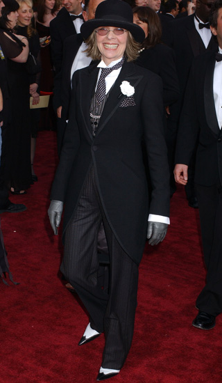 Коли Кітон відбудеться за більш жіночому, але несподіваного шляхи її вбрання поповнюватися спідницями до коліна з широким масивним поясом, сорочки з високими комірами, біжутерією і брошками. Але що завжди залишиться при ній незмінно? Пара рукавичок.