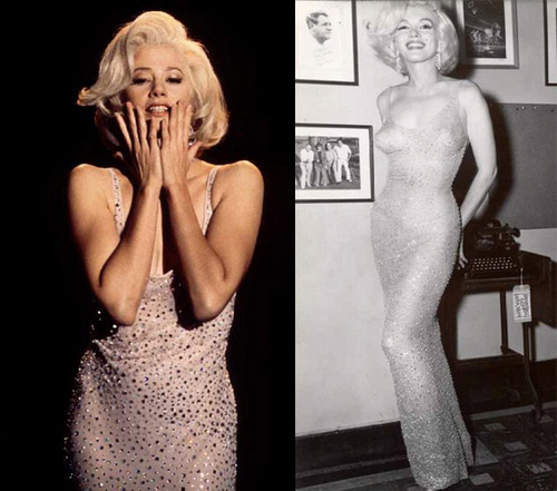 Що це було? А саме: майорить над гратами колектора біле плаття, продемонстроване в картині The Seven Year Itch, рожеві атласні рукавички оперної довжини і безліч ігристих коштовностей у фільмі «Diamonds are a girl’s Best Friend», і зшите на замовлення тілесне плаття інкрустоване кришталем, в якому вона повинна була виконати «Happy Birthday» JFK.