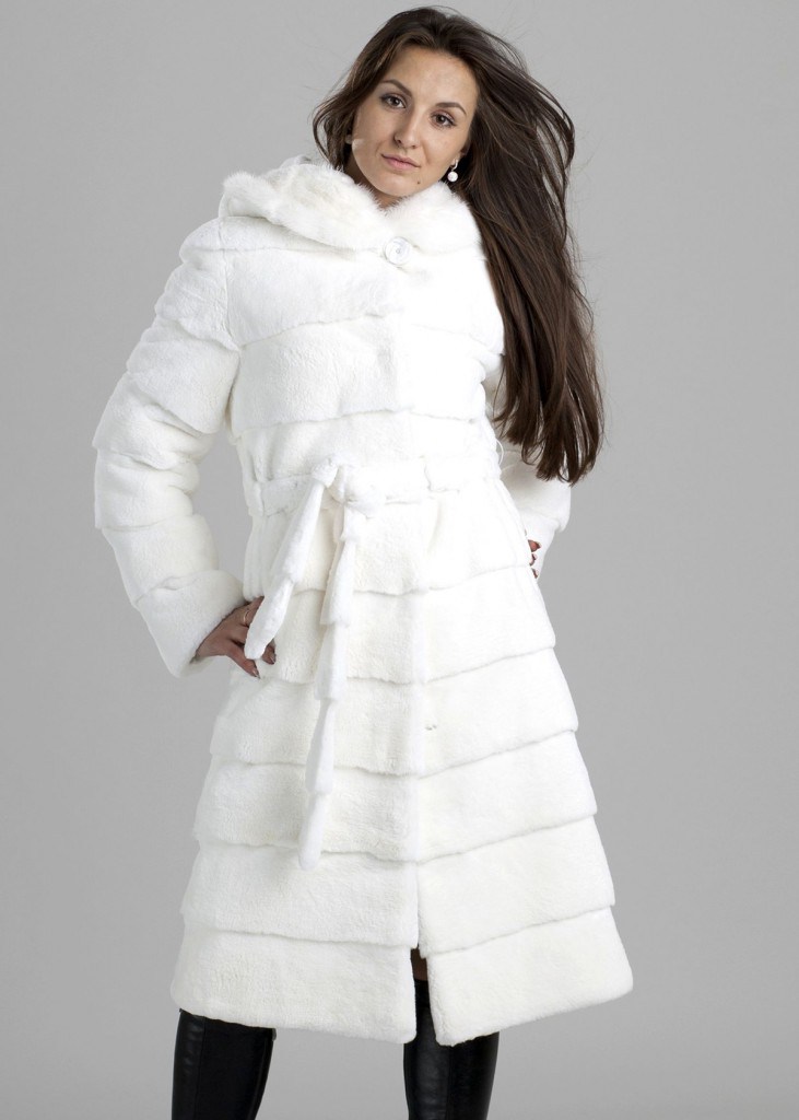 • Так як хутро кролика володіє завищеною зносостійкістю, вибирайте або кожушок, або довжину до коліна. Термін носіння такої шубки 2-3 зимових сезону.