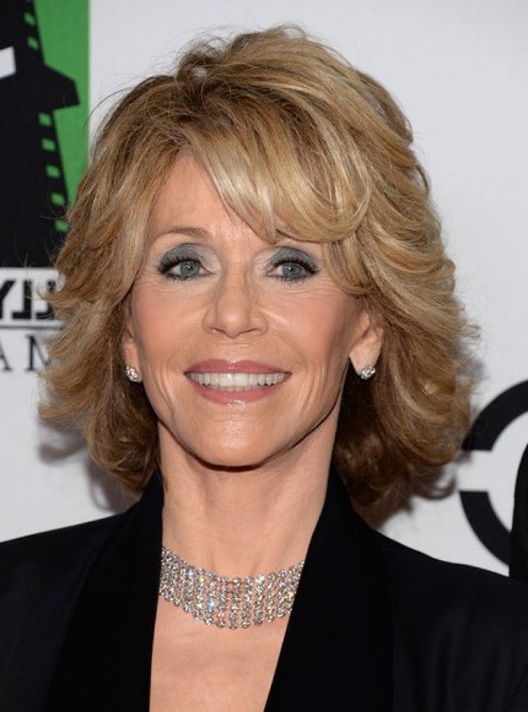Боб з окантовкою традиційно відноситься до короткої стрижки, але реально виглядає, як зачіска на середніх волоссі. Багато знаменитостей серйозного віку віддають перевагу саме їй. Зачіска закриває проблемні зона лоба, омолоджує весь образ жінки, підкреслюючи елегантність стилю.