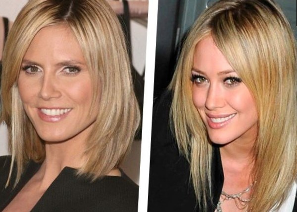 Стилісти роблять прямий кут зрізу, щоб підкреслити гарну форму укладання. Рвані стрижки на середні волосся можуть бути доповнені прямий або косою чубчиком.