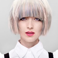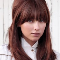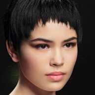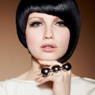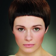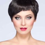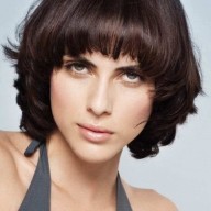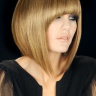 Як не дивно, чубок півколом можна зробити асиметричної – косою. Особливо добре вона буде виглядати на коротких темних або мелірованого волосся. Такий оригінальний елемент стрижки допомагає витягнути і звузити кругле обличчя.