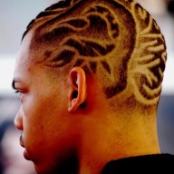 Коротку чоловічу стрижку можна прикрасити візерунками. Як правило, їх роблять на скронях і на потилиці, але іноді оригінальний малюнок може поширюватися на всю волосяну частину голови (як на першому фото).