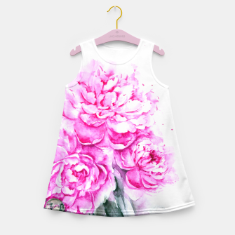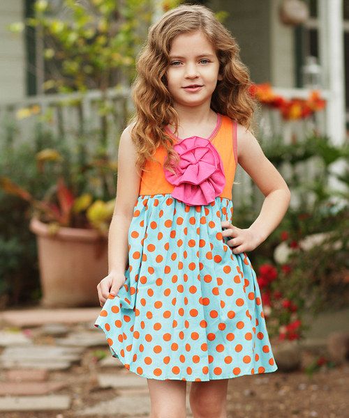 Дитяча мода також із задоволенням використовує принт півонії і різні його стилістичні зображення. Дівчинка в короткій сукні у великий горох оранжевого кольору виглядає святково, завдяки пиону з тканини.