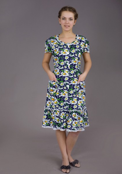 Практична домашня одяг цілком може бути красивою і навіть ошатною, ромашка, чудово підійде для того що б прикрасити повсякденне домашнє плаття.