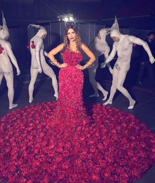 Поява зірки на сцені в сукні з живих квітів вразило публіку й викликала ажіотаж. Скільки розкоші і гламуру в цьому прекрасному вбранні. Поділ сукні, як і всі плаття, виконане з яскраво червоних троянд лежав біля ніг Ані Лорак, як килим. Звичайно, сама вона не змогла в ньому пересуватися без чиєїсь допомоги, але королеві адже це і не треба.
