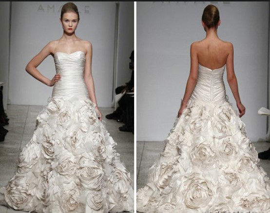 Якщо це весільну сукню, то саме пелюстки троянд підкреслять красу і молодість нареченої. Дуже гармонійно поєднуються пелюстки на подолі сукні з інструктувати цілими бутонами на ліфі.