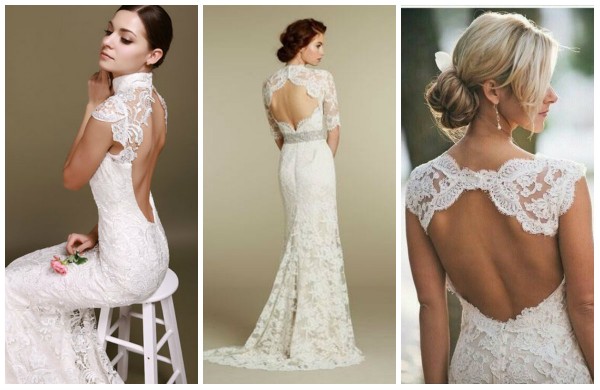 Так само виріз на сукні нареченої може бути не невеликою до середини лопаток, але тоді він повинен бути красивої форми, наприклад, ажурним з тонкого мережива або у формі крапельки.