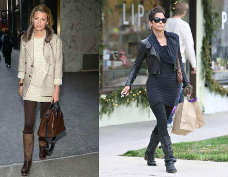 З легінсами і колготами доречно надіти чоботи вище коліна. Крім того, що це головний тренд сезону, подібна взуття стане додатковим захисним шаром для жіночих ніг.