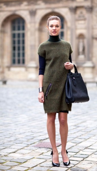 Якщо погода вітряна, але мороз ще не відчувається – можна сміливо переносити знайомство з сукнею-светром на вулицю.