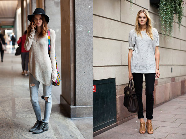 Замість легінсів спробуйте надіти джинси-скінні. Темна пара з м’якої тканини – незамінна річ для осінньо-зимового сезону в поєднанні з сукнею-светром. Деяким дівчатам більше подобаються легінси за їх унікальні стрейчеві здібності. Але все ж слід віддати належне високим тепловим показниками речей з деніму, що особливо важливо в холоди.