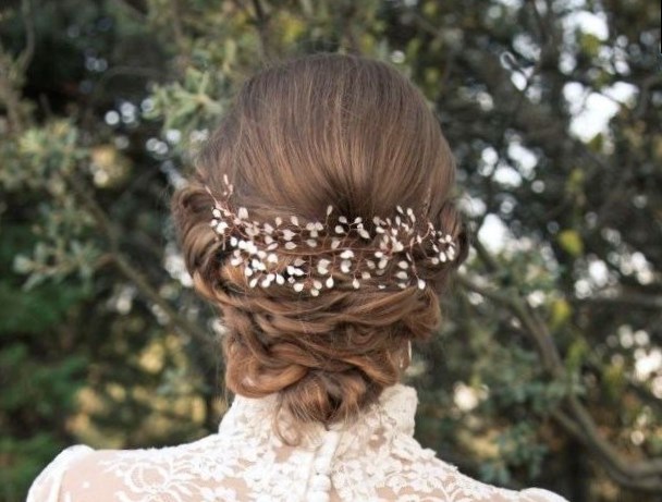 За допомогою подібної зачіски можна буде створити романтичний вигляд. Бічний вільно покладений шиньйон з подібними аксесуарами буде виглядати як можна