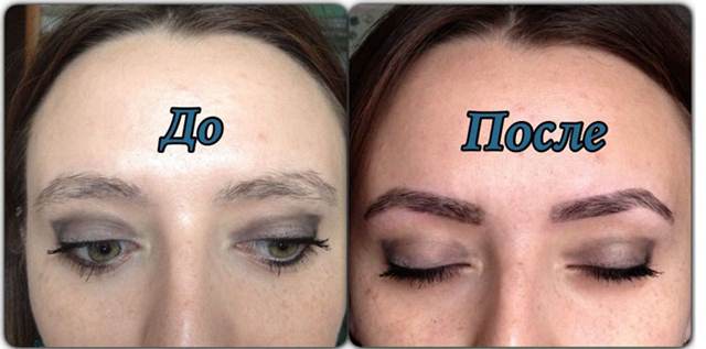 А ось на подивіться нижче на ефект від проведення корекції брів ниткою на фото до і після: