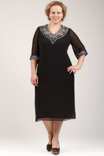Для широких плечей роблять V – подібний виріз, що звужує плечі і підкреслює красу повного бюста властивого для пишною леді. Щоб приховати округлі стегна модельєри радять підбирати сукню з прямою донизу спідницею або вільний крій від грудей, лінію під грудьми окреслюють контрастною стрічкою з турецького атласу.