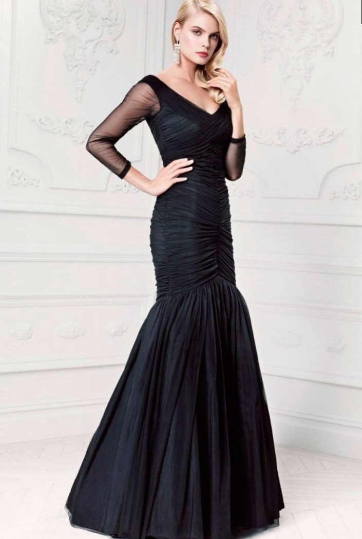 Розкішне довгі вечірні сукні 2017 фото новинки чорного кольору вразять їх власниць тим що в них вони виглядають набагато витонченіше і стрункішою.