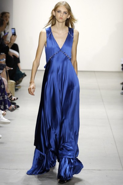 Також дуже оригінальними новинками є сукні з тонкої блискучої тканини з асиметричним глибоким вирізом. Саме такі продемонстрували Malan Breton і John Richmond.