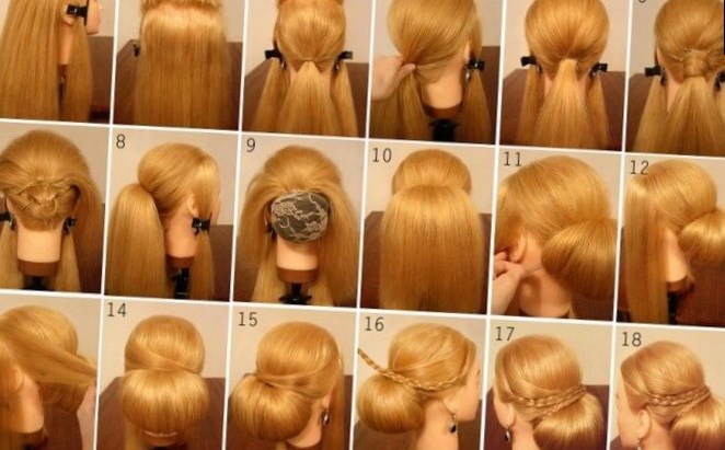 За допомогою хвоста можна створювати дуже красиві зачіски на довге волосся. Фото нижче допоможе вам самостійно зробити гарний пучок «ракушка».