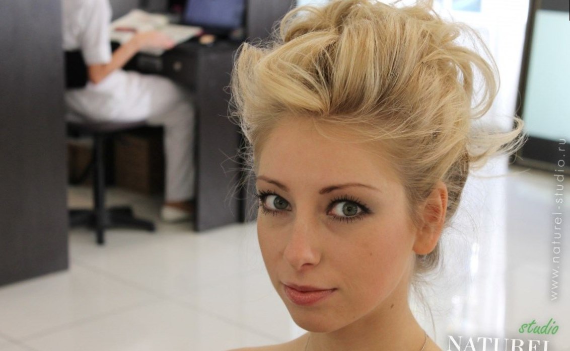 Вечірня зачіска на коротке волосся. Класичний пучок, шанований серед багатьох стилістів, є самим