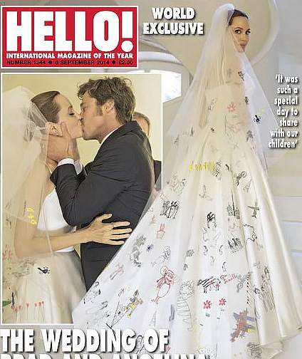 Весільна сукня Анжеліни Джолі, яке воно? Нарешті-то улюблена багатьма чудова актриса показала світу! Як з’ясувалося, сукню актриси стало милим втіленням творчих знахідок її шістьох дітей.