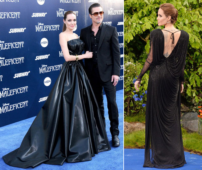 Як вам це смарагдове плаття? Воно наче спеціально створено для сяючою кінозірки такого масштабу, як чудова актриса Анджеліна Джолі. Дивовижна Джолі незвичайно гарна в цьому довгому чорному платті. Відкриті плечі полонять зір, а пояс ефектно підкреслює струнку талію.