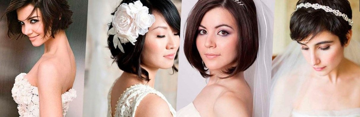 Якщо у нареченої коротке волосся, то весільна зачіска з чубком може бути каре з трохи подовженою чубчиком; так само підійде каре з чубчиком в ретро-стилі.