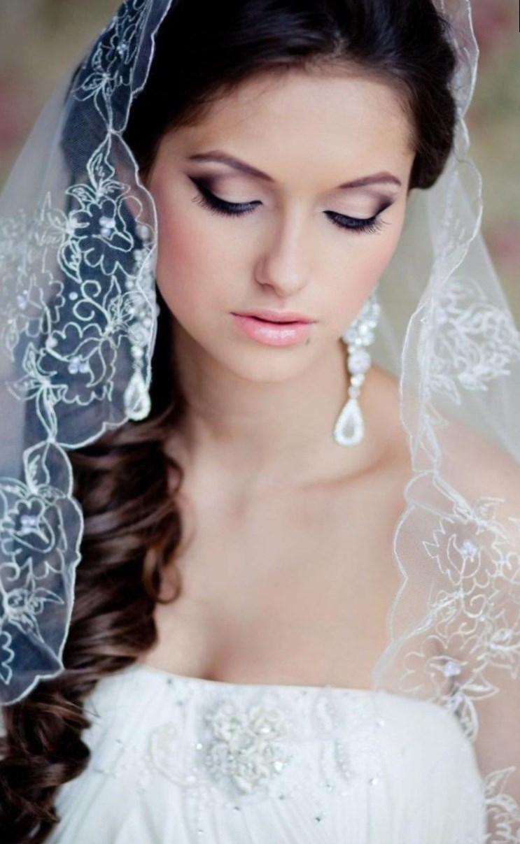 весільні зачіски з фатою іспанкою. Для неформального весільного торжества можна зробити вибір на користь довжини