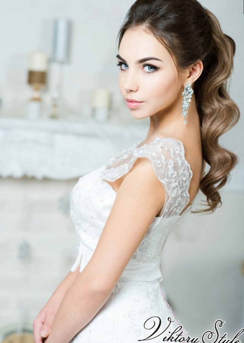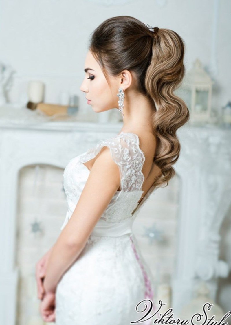Як не дивно, зачіска хвіст теж підійде для весілля, однак, необхідно ретельно продумати весь образ, щоб зачіска і плаття з аксесуарами