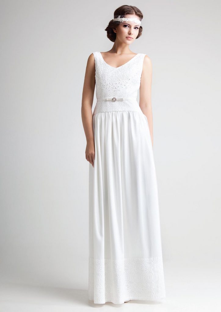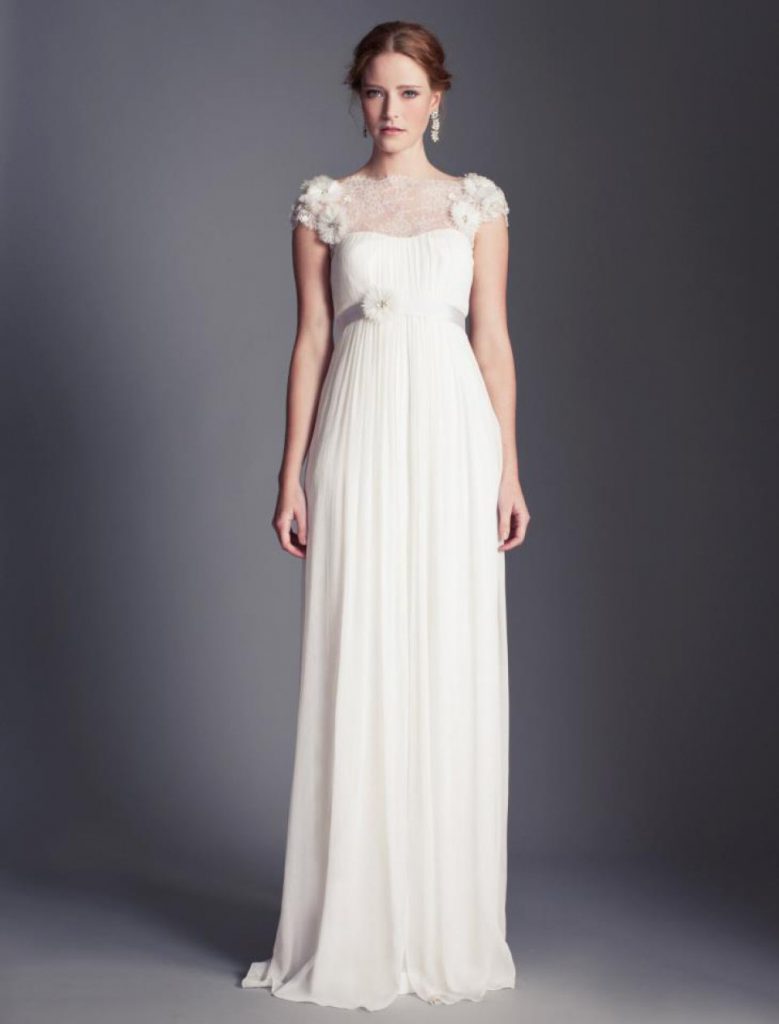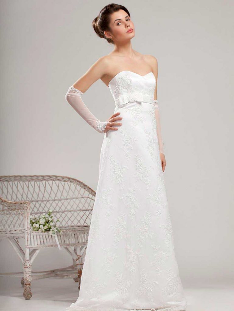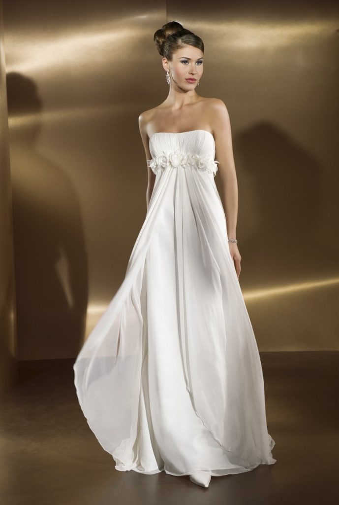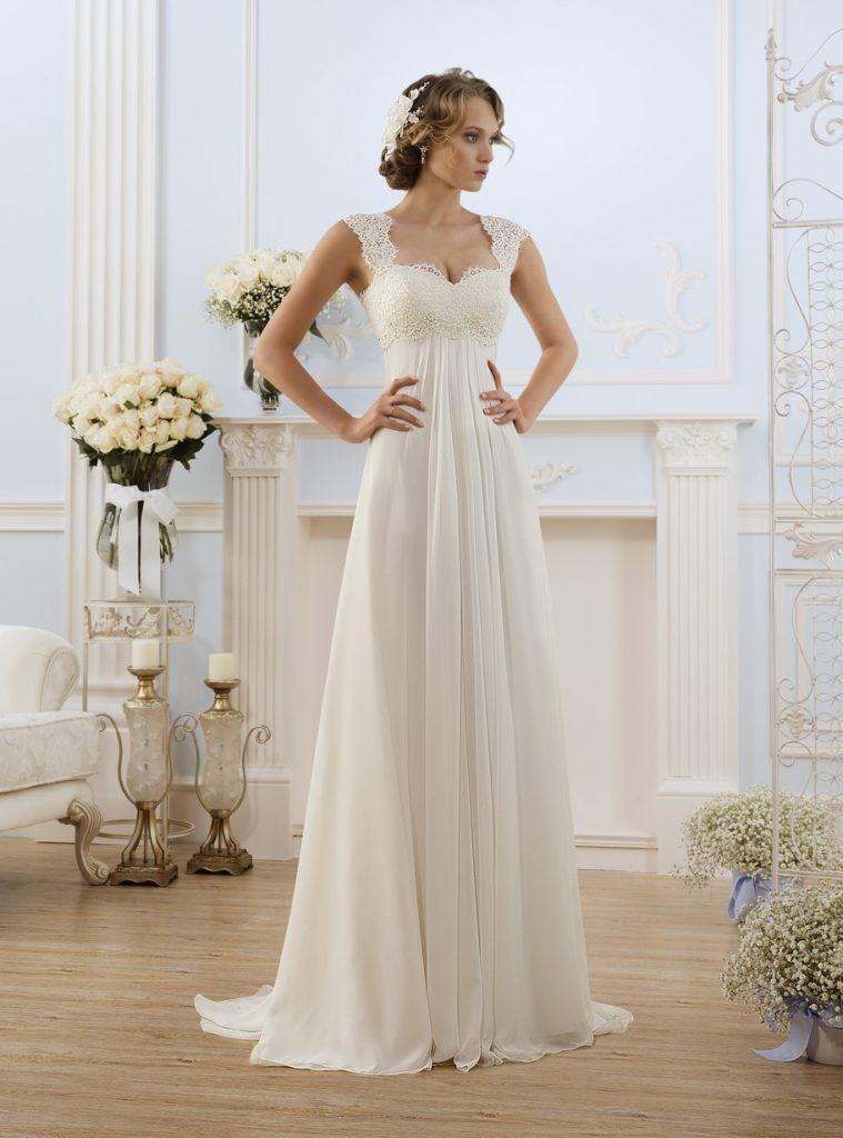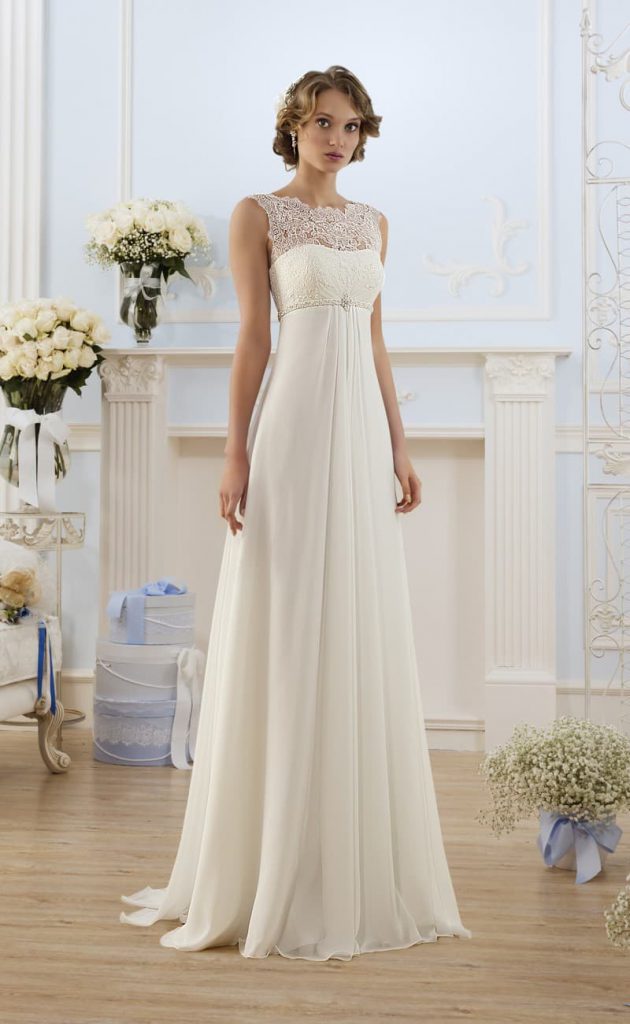 • незважаючи на простоту фасону, весільні сукні такого силуету вишукано декоровані, на вигляд вони багаті і стильні. Дизайнери прикрашають пояс під грудьми різними елементами або виконують декорування на ліфі і бретелях.