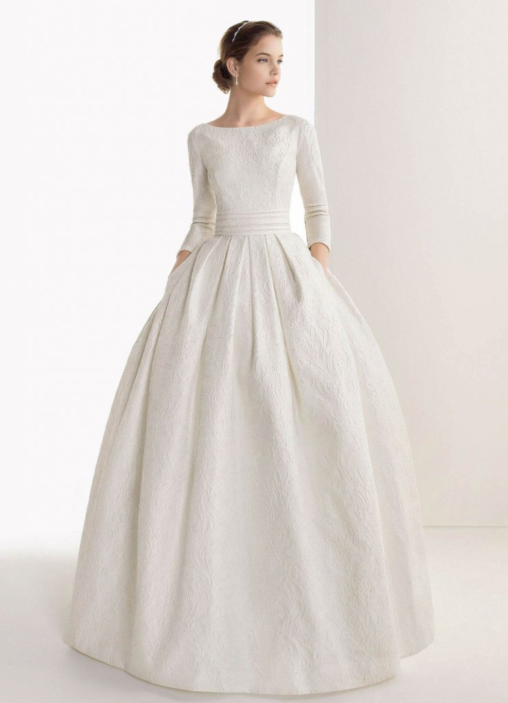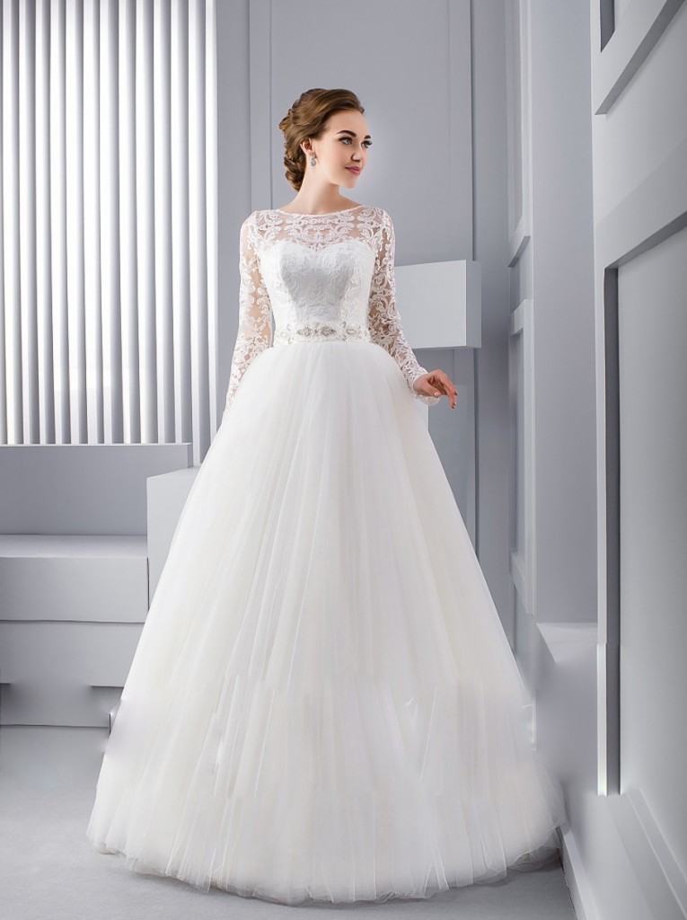 Рукава грають в таких нарядах важливу роль. Вони приховають зайву повноту або худобу рук, у них комфортно буде дівчині в зимовий і осінній час. Вони відмінно підходять для церемонії вінчання, адже руки і плечі під час перебування в храмі повинні бути закритими.