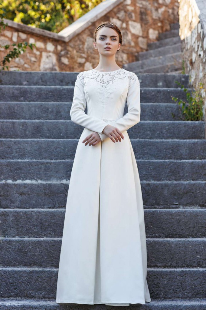- це оптимальний вибір для зимового весілля. Якщо сукня без рукавів, його доводиться доукомплектовувати накидкою або болеро, а це не завжди виглядає стильно. Для венчальной церемонії також слід вибрати фасон з довгим рукавом;