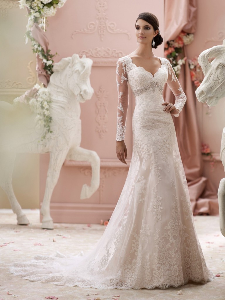 Моделі вбрання з довгими прямими рукавами підходять нареченим різного віку – молоденьким дівчатам і жінкам постарше. У нинішньому сезоні довгий рукав буде актуальним, як і сукні з коротким рукавом або взагалі без нього. Багато модельєри включили їх у свої незабутні колекції.