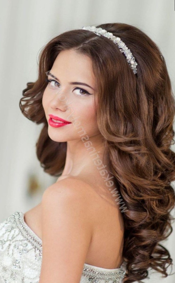 Зачіски з діадемами традиційно улюблені нареченими з довгим волоссям. Дуже виграшно виглядають великі довгі локони в поєднанні з діадемою прикраса