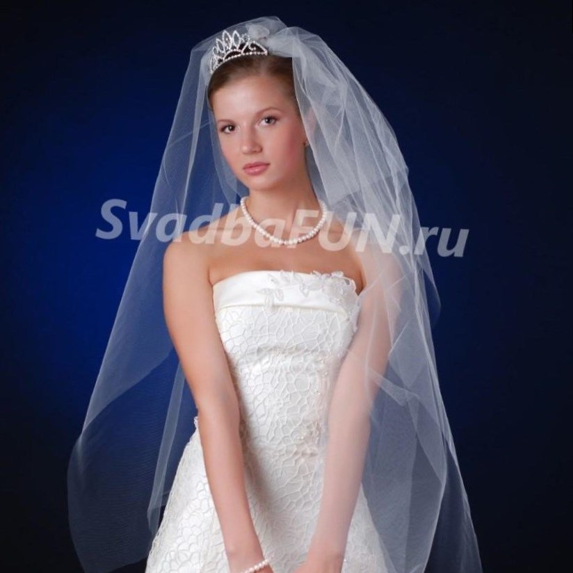 Весільна зачіска з діадемою, фатою і чубчиком виглядає добре на волоссі будь-якої довжини. В залежності від глибини чубчика, прикраса може розташовуватися