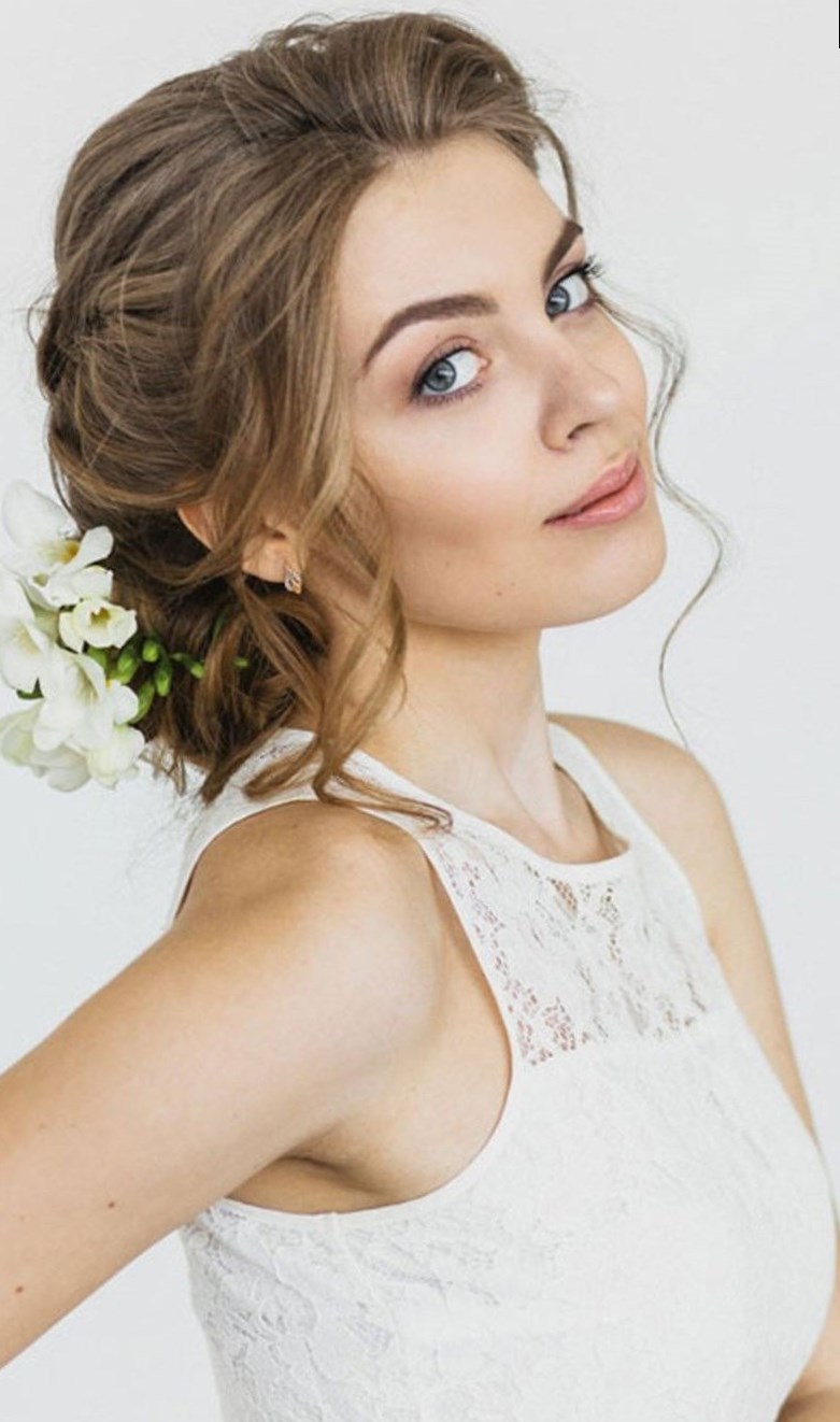 Весільні зачіски на таку довжину найрізноманітніші, оскільки волосся можна і розпустити, і зібрати в модний «пучок» або коси.