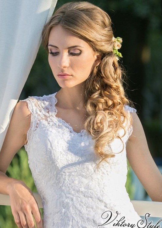 Весільні зачіски на один бік. Якщо ви володарка довгих пасм і хочете зачіску з розпущеними волоссям, підійде легка укладка з