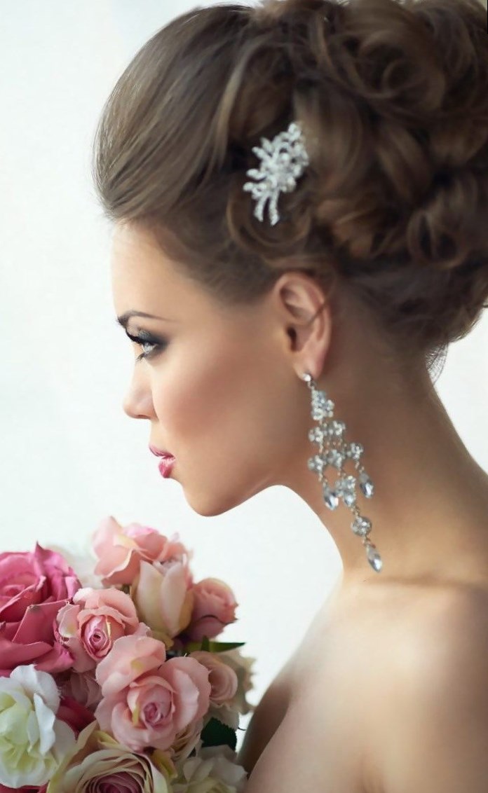 Весільні високі зачіски роблять образ нареченої більш жіночним, підкреслюють красу плечей, концентрують увагу на красу шиї і спини.