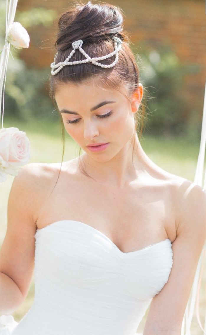 Головний секрет вдалої весільної зачіски для такої форми особи як можна більше горизонтальних ліній при мінімумі вертикальних.