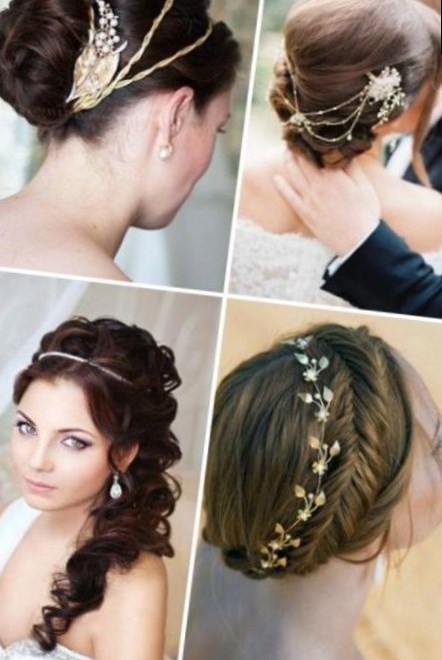 В якості прикрас для весільної зачіски можна вибрати шпильки, гребінці і діадеми золотих і мідних квітів з грецьким орнаментом. Один з найбільш популярний
