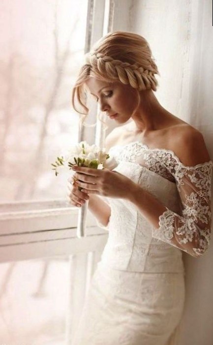 Головний секрет вдалої весільної зачіски для такої форми особи як можна більше горизонтальних ліній при мінімумі вертикальних.