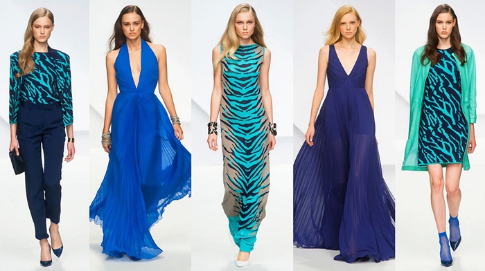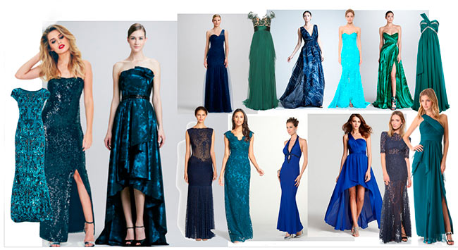 - Navy Blue & Cobalt Blue — Коктейльні варіанти темно — синіх відтінках виглядають запаморочливої. Прикладами можуть служити сукню з осикою талією і хвилястими краями Естебана Кортасара, максі з блискітками від Діора або шовкове плаття Гарета П’ю у білизняному стилі.