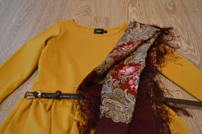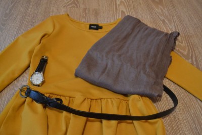 Нарешті, хочу зазначити, з чим же це плаття краще носити. Аксесуари можуть бути абсолютно будь-які. Наприклад, дизайнери найчастіше пропонують до такої сукні для додання яскравості аксесуари синього і блакитного кольорів, але мені все ж більше подобається поєднання теплих осінніх відтінків: бардовий, бежевий і коричневий. Так як це мій відгук про сукню, то й я опишу варіанти, які подобаються мені, а не дизайнерам.