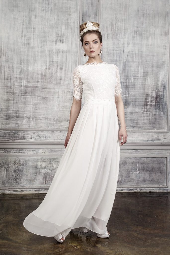 Для весільного наряду сучасної нареченої даний часовий відрізок не підійде. Однак шанувальниці мінімалізму можуть підшукати собі гідну модель. Ідеальний варіант – просте плаття А-силуету без особливого декору. На голові коротка, зібрана фата або капелюшок з вуаллю.