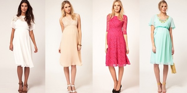Красиві шовкові сукні, трикотажні, вироби з щільних матеріалів може підібрати для себе вагітна жінка. Деякі вироби розроблені таким чином, щоб їх можна було носити і після пологів. Модельєри випустили колекцію суконь на весілля, завдяки їм майбутня мама буде виглядати розкішно та вишукано.