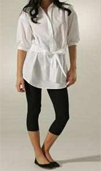 В якості альтернативи коротким рукавом ви можете залишити його довгим, поєднуючи сорочку-сукні з чорними легінсами і сандалями на плоскій підошві або туфлями. Якщо ви ніяковієте занадто відкритих ніг або хочете додати поряд більш формальний вигляд, замініть легінси на вузькі джинси.